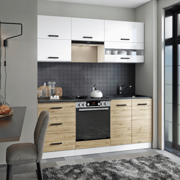 BLACK&WHITE VIVIANE KONYHABLOKK 210 CM SZÉLES ALPESI FEHÉR/ARISTAN TÖLGY