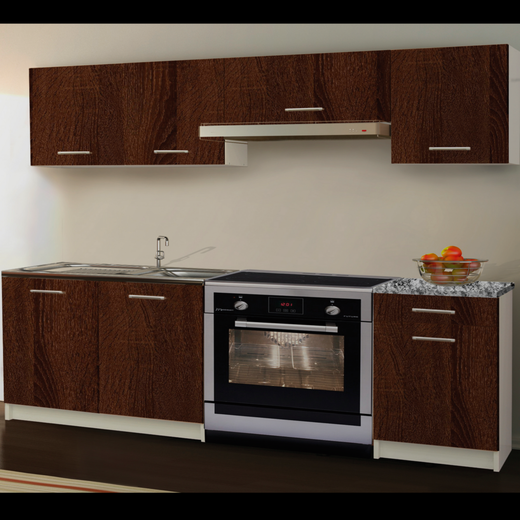 ECO konyhablokk: alsószekrény mérete: 120x85x45 cm, felsőszekrény mérete: 180x57x31 cm, munkalap mélysége: 60 cm. Színe: csokoládé sonoma tölgy dekor. Konyhagépek, mosogató, csaptelep és dekoráció nélkül!A mosogatószekrény elem nem tartalmaz munkalapot.