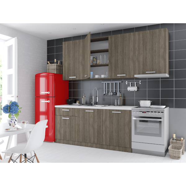 Ena konyhablokk 240cm széles k007 kávé tölgy dekor - Komplett