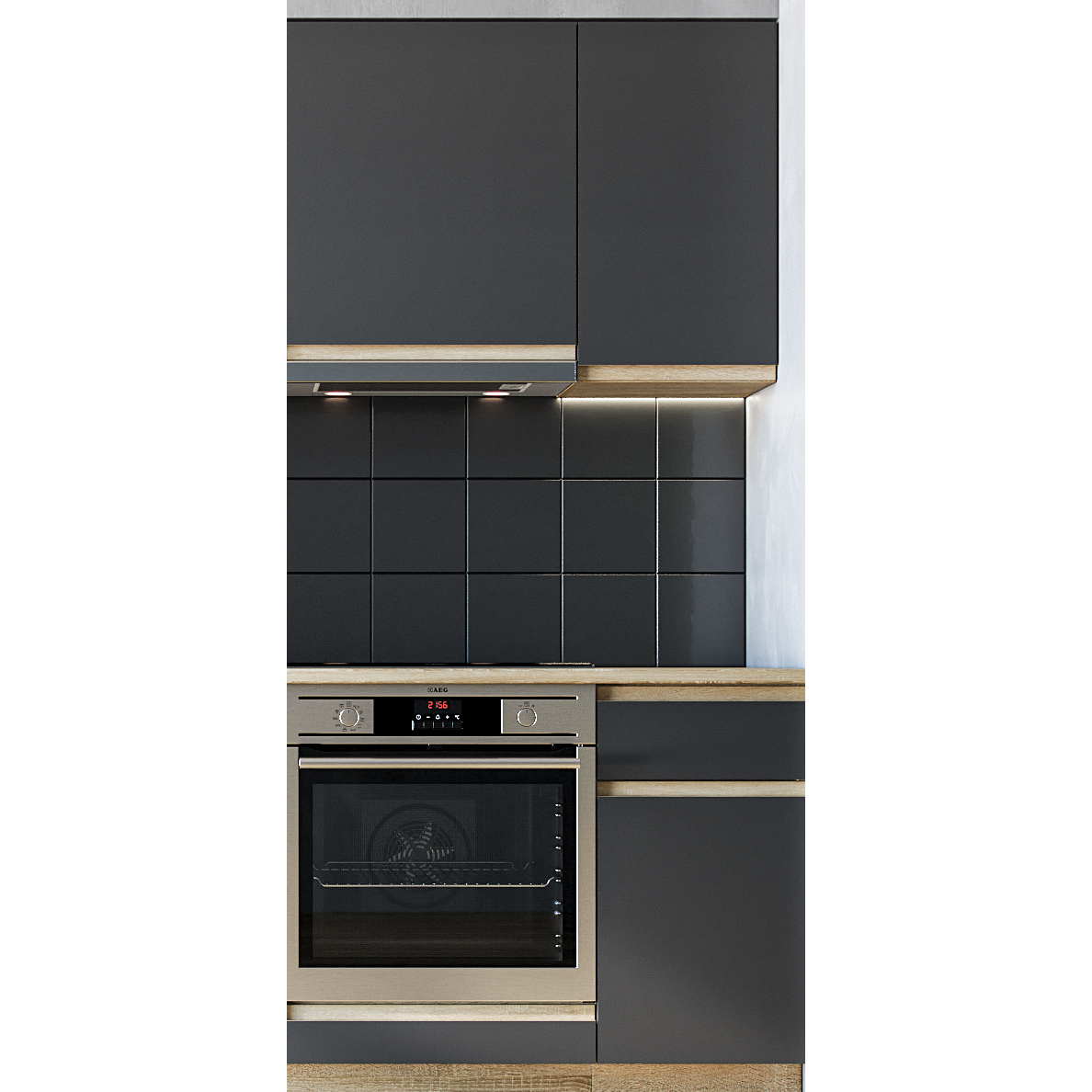 Front: 16 mm MDF, antracit, integrált fogantyúkkal