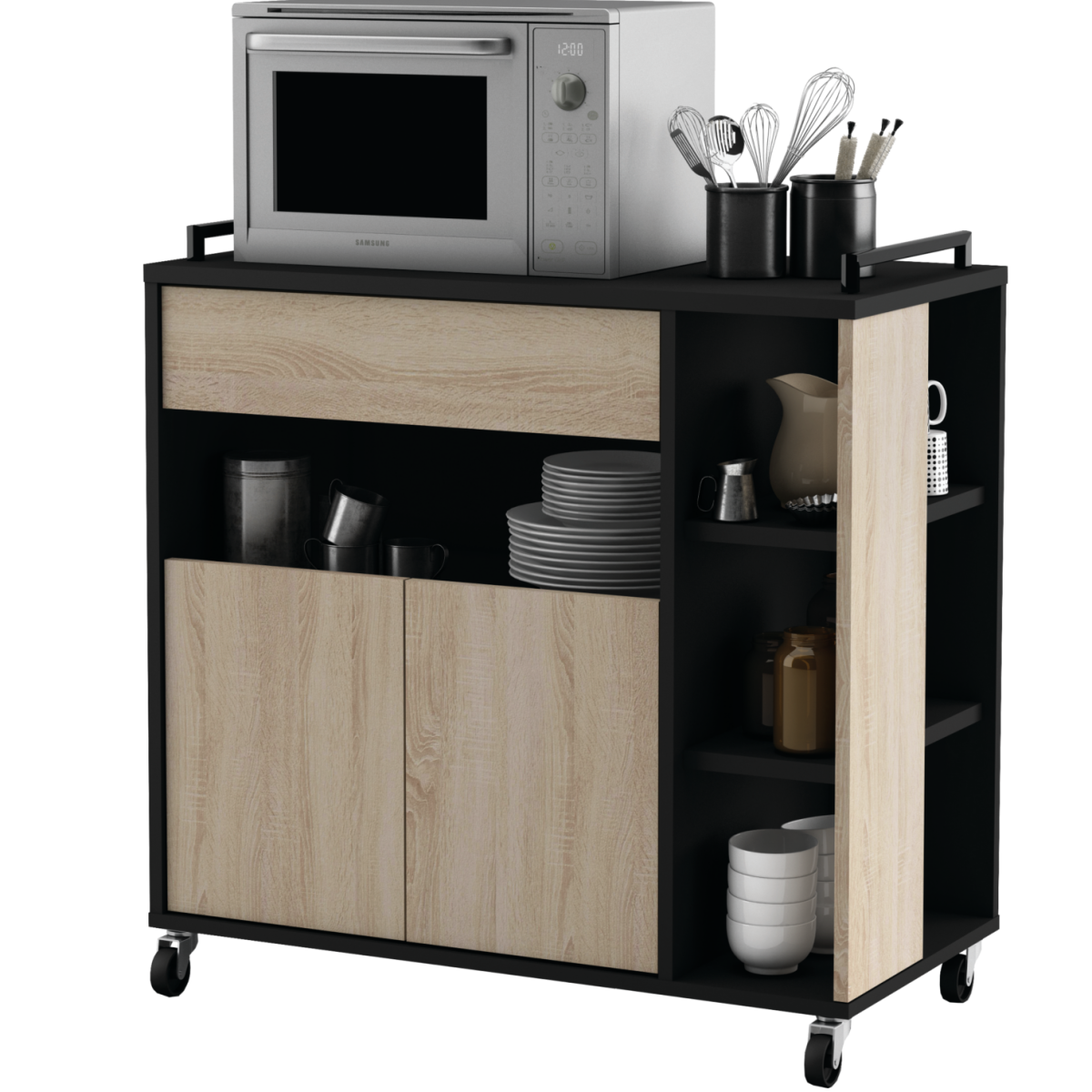 Indus konyhai gurulós tároló tölgy/fekete színben, mérete: 80x76,5x40cm.