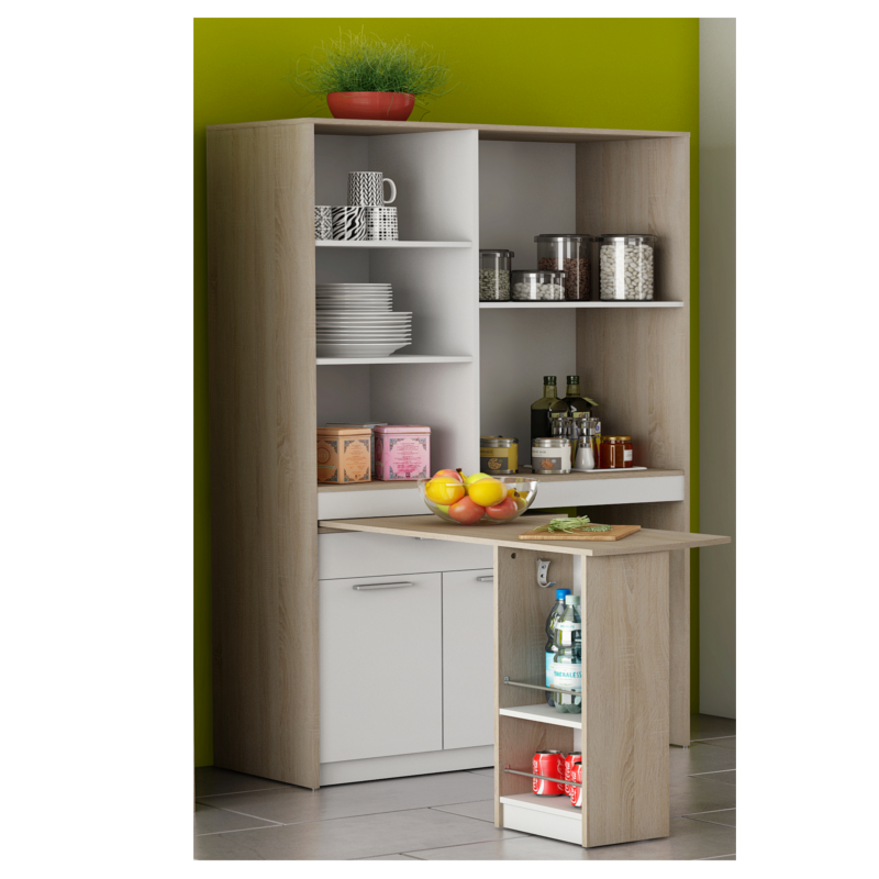 Konyhai tárolos szekrény. Sonoma tölgy/fehér színű. Méretei: 100x182x41,5/134cm.