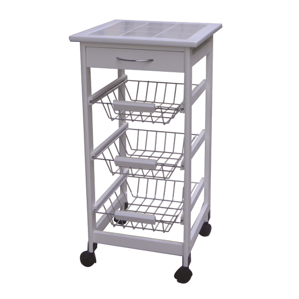Gurulós tároló 3 kosárral 37x76x37cm fehér - Konyhai tároló