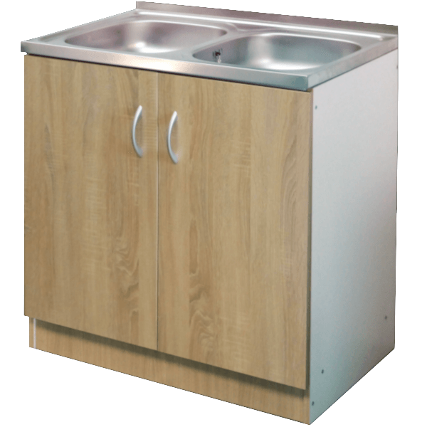 Komplett 2 medencés alsó mosogatós szekrény, két ajtóval, fehér/sonoma tölgy színben. Mérete 80x50 cm. A hozzátartozó felső szekrény a 326998-as cikkszámon érhető el.