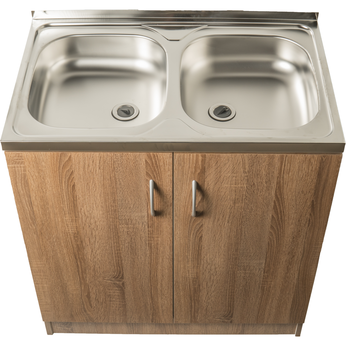 Komplett, 2 medencés mosogatószekrény fehér korpusz/ sötét sonoma tölgy színű, mérete 80x50 cm.