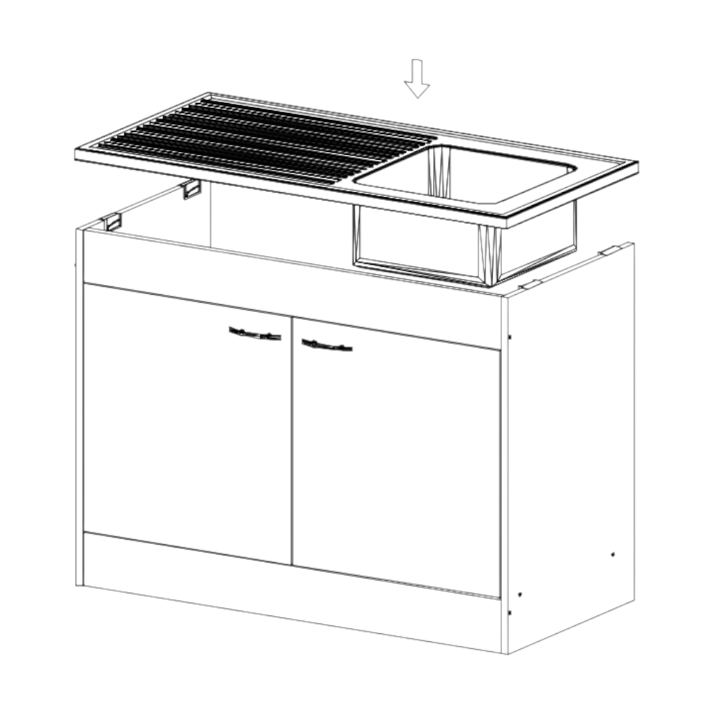 Komplett mosogatószekrény 80x50 cm méretben, nyílóajtós, fehér korpusz és front, kétmedencés rozsdamentes acél mosogatótállal, elegánsan közé záródó ajtóval.