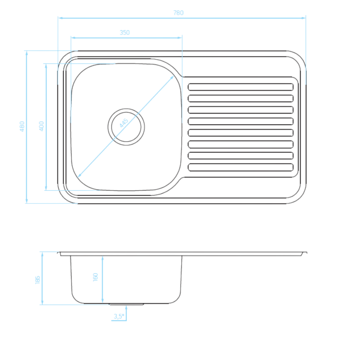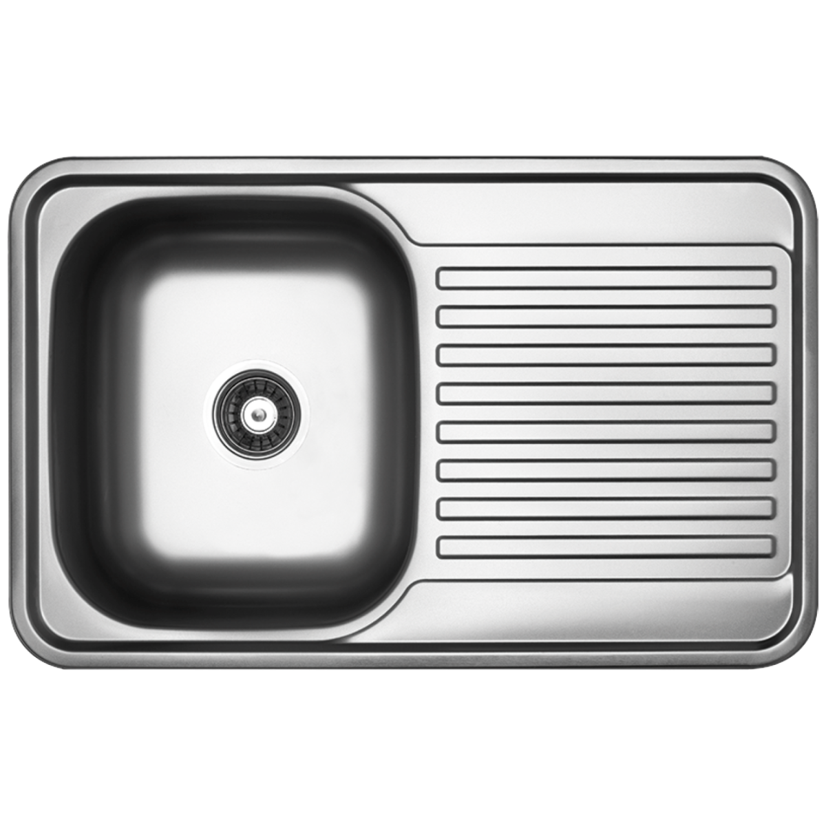 A Faro egymedencés, csepptálcás rozsdamentes mosogató praktikus kialakításával jól illeszkedik a mindennapi konyhai feladatokhoz. Méretének köszönhetően kényelmes használatot tesz lehetővé, a mély medence pedig nagyobb edények mosogatására is alkalmas. Tartozékok: rögzítő köröm, szigetelő szalag, 3,5"-os szűrőkosaras leeresztő bűzelzáró szifon.