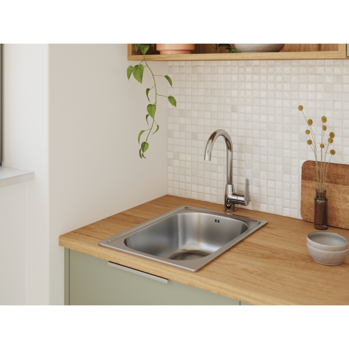 A MINI 1M kompakt méretű, rozsdamentes mosogató praktikus választás kisebb konyhákba, mosókonyhákba vagy mellékhelyiségekbe. Extra mély medencéje ellenére helytakarékosan beépíthető, miközben a rozsdamentes kivitel időtállóbb használatot biztosít a mindennapi mosogatás során.