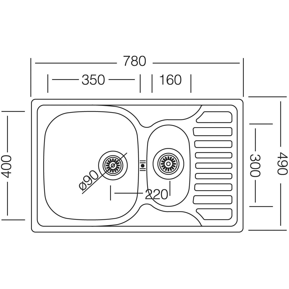 Livinox EC-174K mosogató; natúr, rozsdamentes acél; csepegtetőtálcás, gyümölcsmosóval; lefolyóméret: 3,5".
