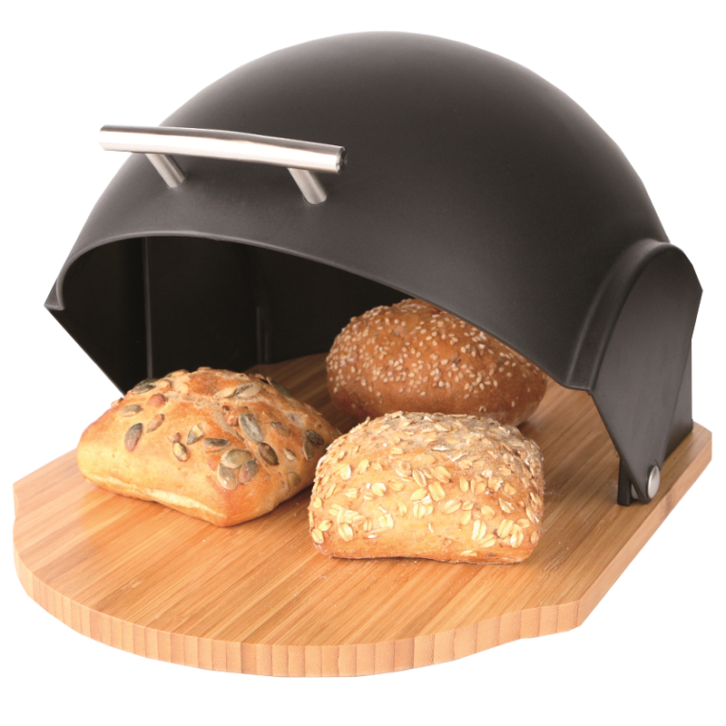 Természetes fából készült, a teteje műanyag. Alkalmas sütőipari termékek tárolására.