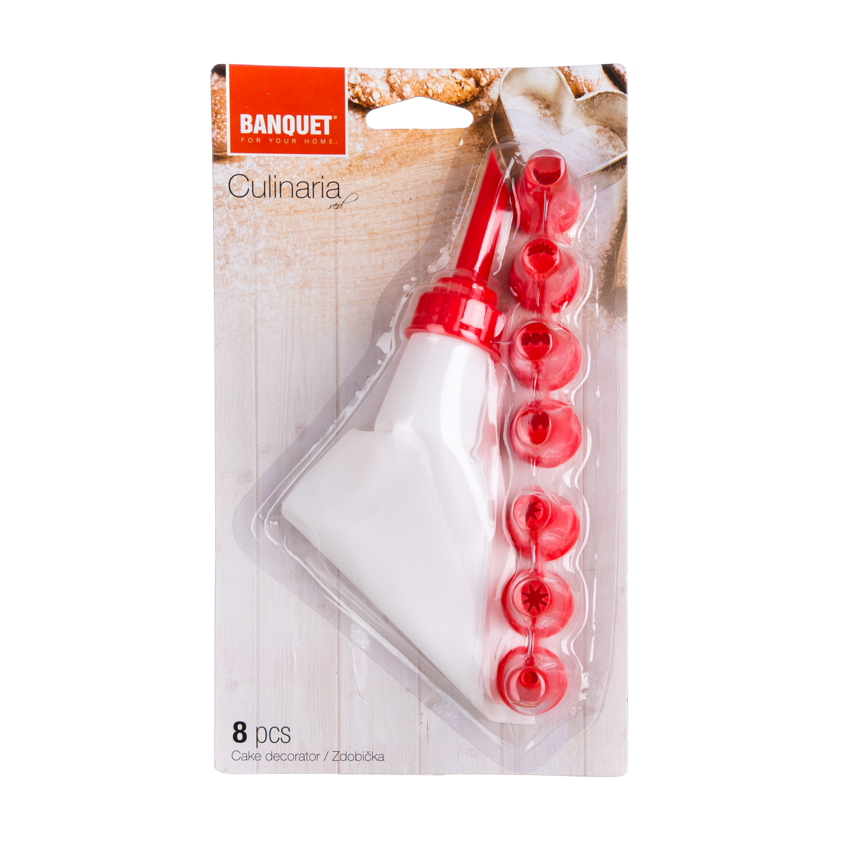 A CULINARIA tortadíszítő a 8 díszítőcsővel kiváló cukrászati díszítő és töltő eszköz. A készletben 1 díszítő zacskó és 8 db eltérő típusú csőr található, melyekkel különböző fajta minták készíthetőek. A készlet ellenálló műanyagból készül. Mosogatógépben nem mosható.