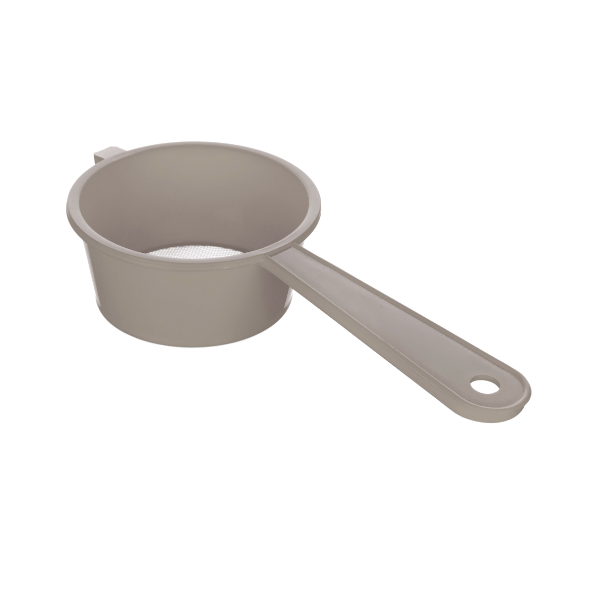PRAKTIS műanyag szűrő, hossza 7,5 cm, színe latte, ételek és tésztafélék leszűrésére.