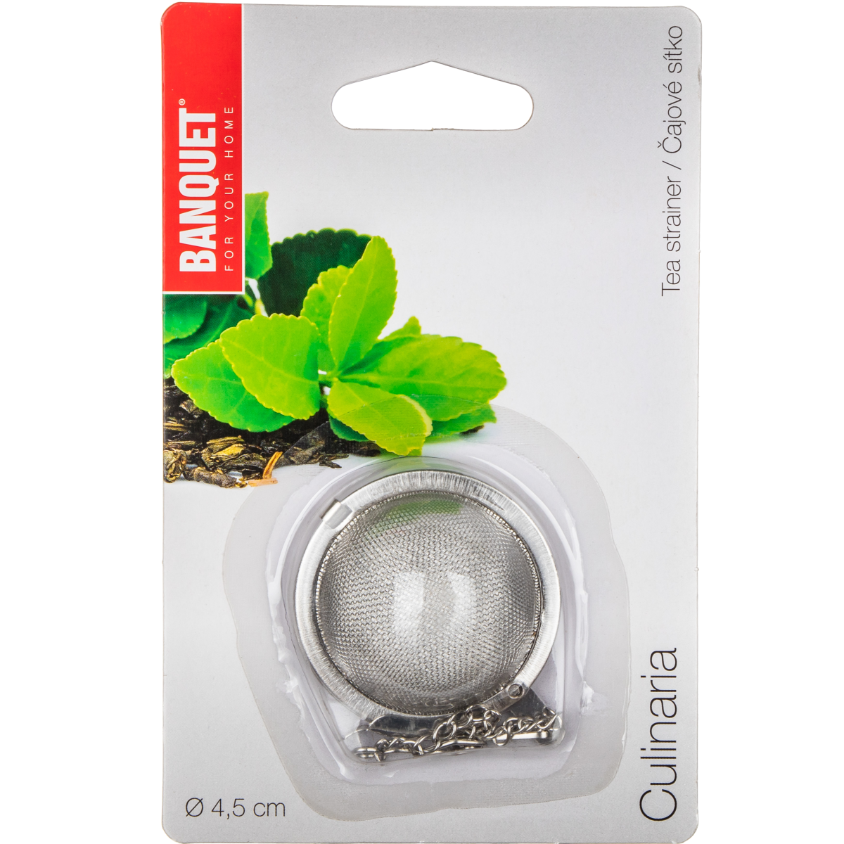 CULINARIA teaszűrő, gömb alakú, ármérő 4,5 cm, lánc hosszúsága 13,5 cm, anyaga - rozsdamentes acél 18/8. A teaszűrő a leveles tea kiáztatásához nélkülözhetetlen segítség, könnyen készíthet vele egy csésze tetszőleges fajta ízletes minőségi teát. A szűrő szagtalan, higiénikus és könnyen karbantartható.