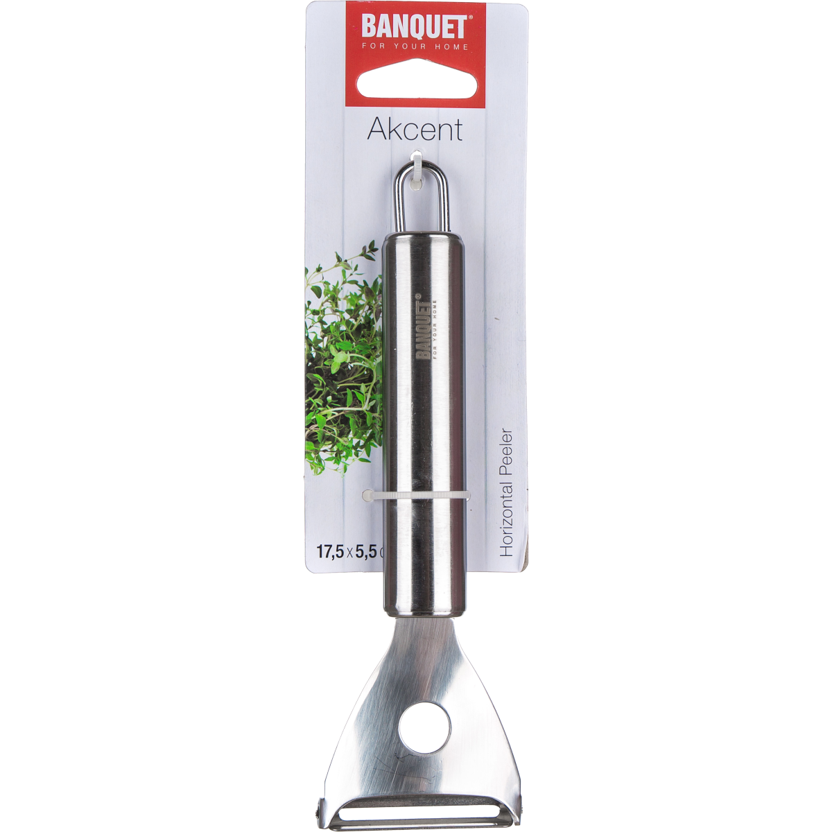 AKCENT keresztpengés hámozó sárgarépa, uborka és más hosszúkás zöldségek, de különböző gyümölcsök hámozására is remekül használható. Mérete 17,5 x 5,5 cm. A rozsdamentes acélból készült hámozó praktikus akasztójának köszönhetően felakasztható. Az AKCENT konyhai eszköz termékcsalád az igényes professzionális elvárásoknak is megfelel, és háztartási használatra is alkalmas. Valamennyi termék idők felettiségét, hosszantartó megbízhatóságát és minőségét egyszerű funkcionális design biztosítja.