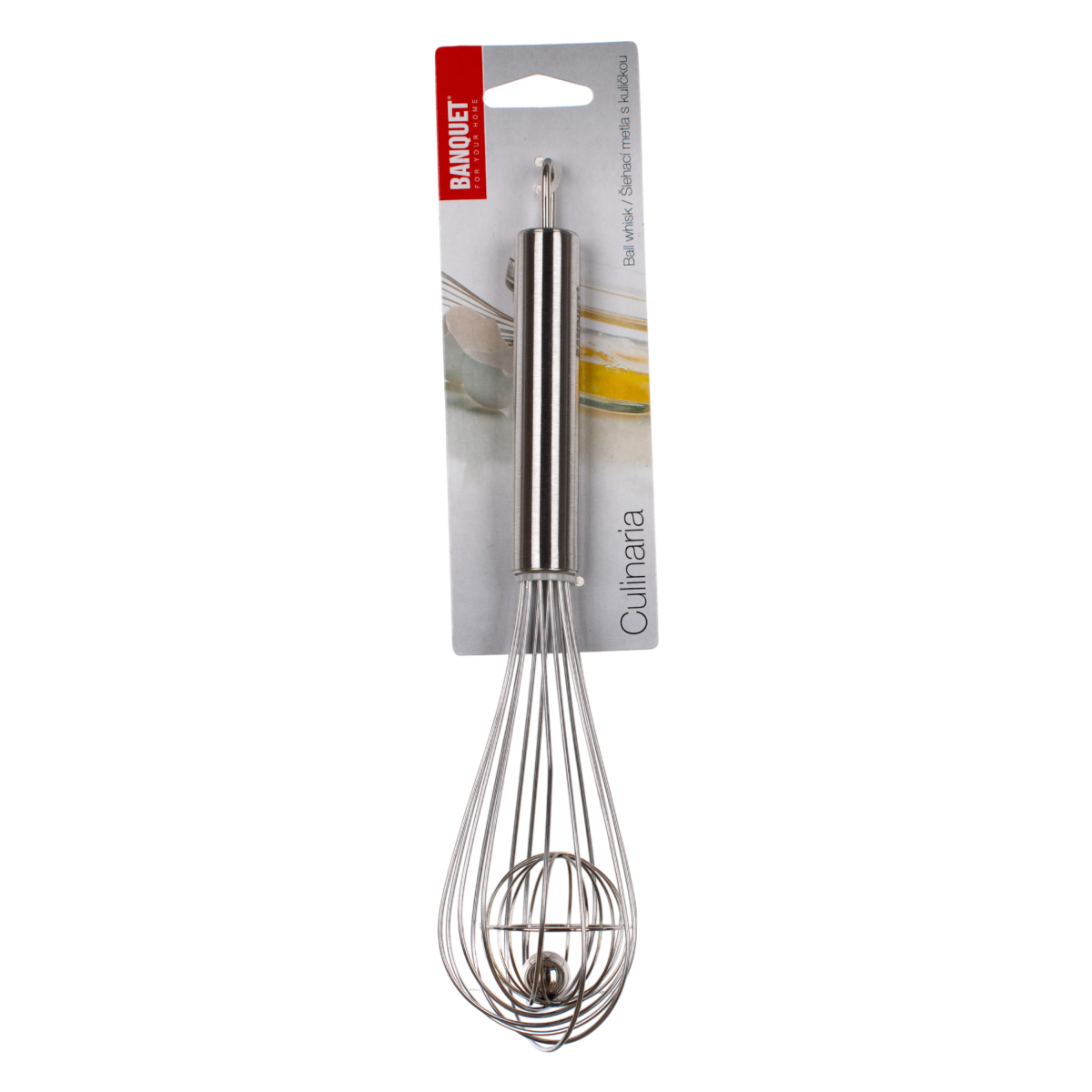 A Culinaria golyós kézi habverő praktikus eszköz a konyhában, ha gyorsan és könnyedén szeretnéd felverni a tojásfehérjét, tejszínt vagy habosítani a tejet. A 7 erős, 1,4 mm vastag rozsdamentes acél drót golyós kialakítással segíti a hatékonyabb levegőbevitelét a masszába, így a hab könnyebb és levegősebb lesz.