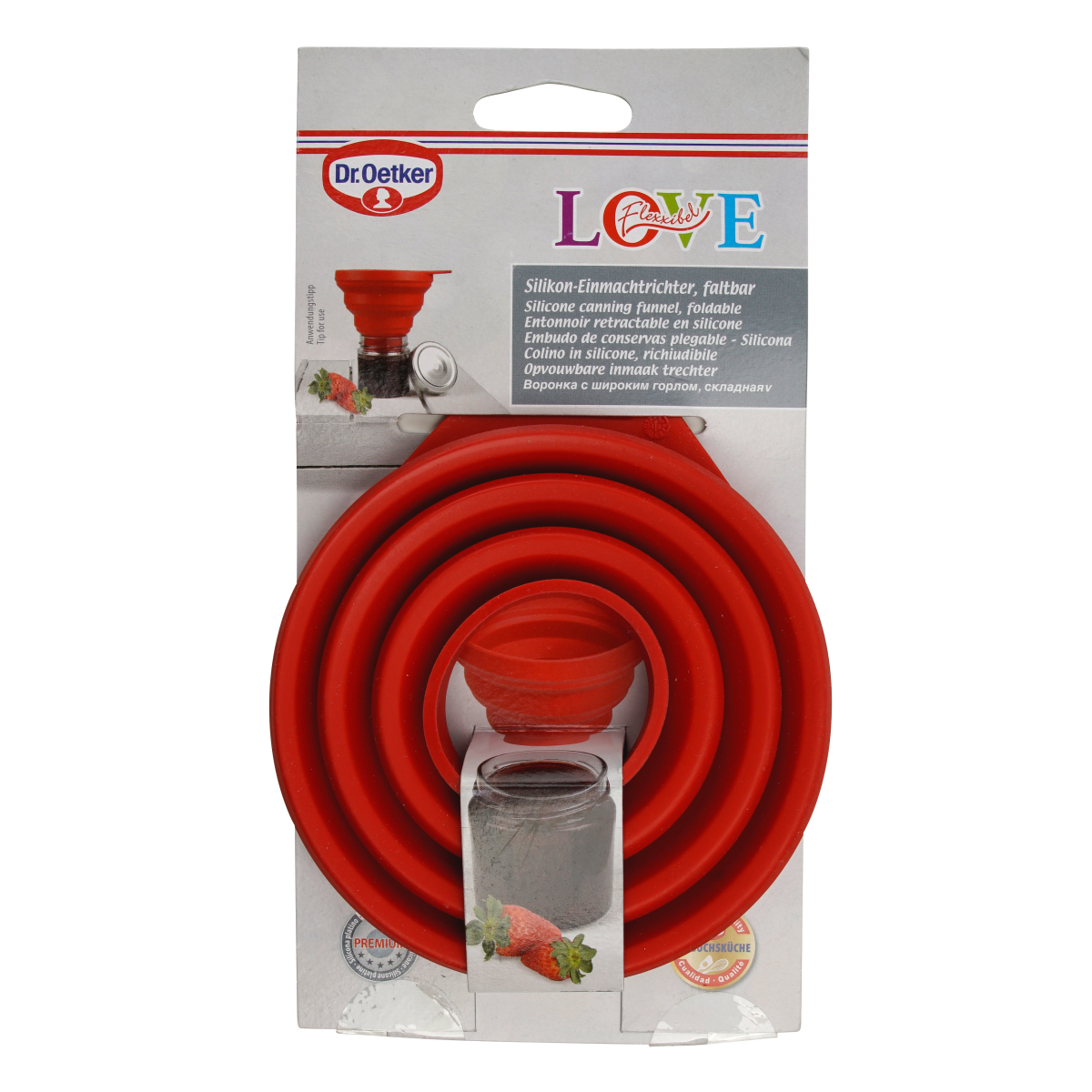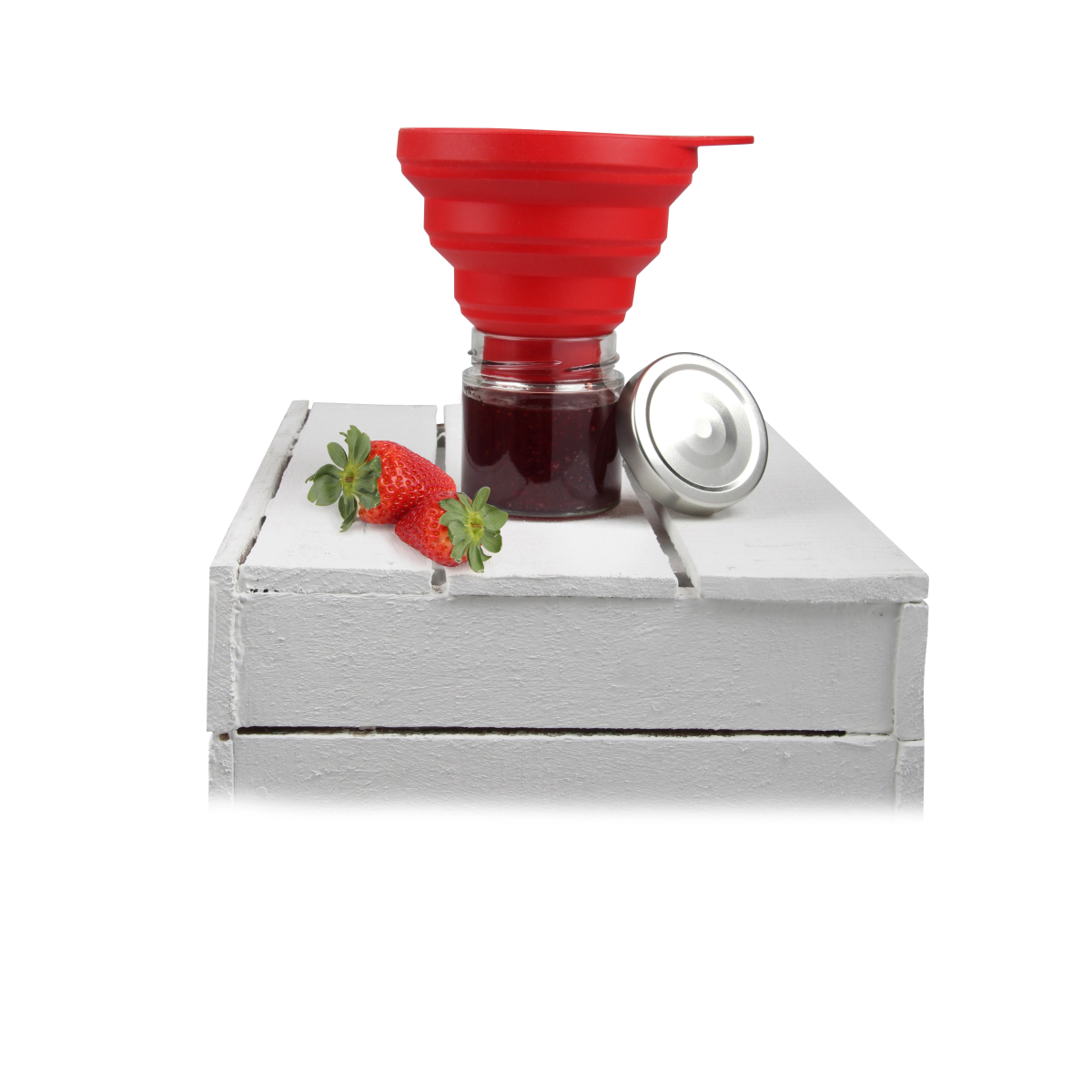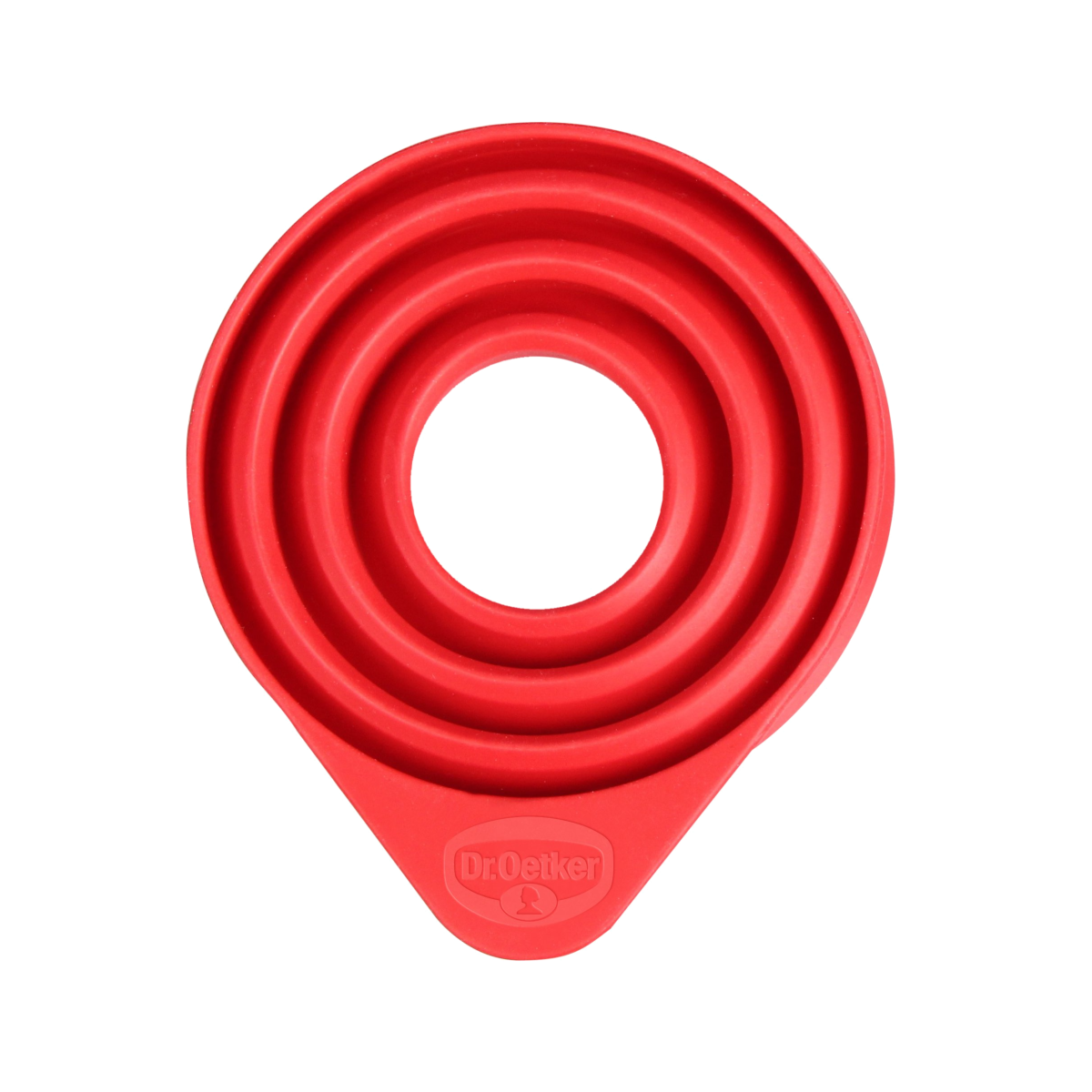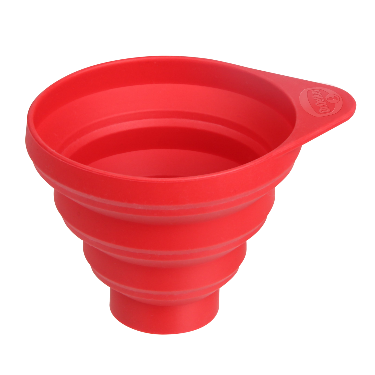 Összecsukható tölcsér magas minőségű platina-szilikonból. Extra nagy nyílással az egyszerű feltöltéshez. Alkalmas például szószok töltésére palackokba. Élelmiszer-biztonságos és gyümölcs saválló. Hőálló -40 és + 230 ° C között. Mosogatógépben tisztítható.