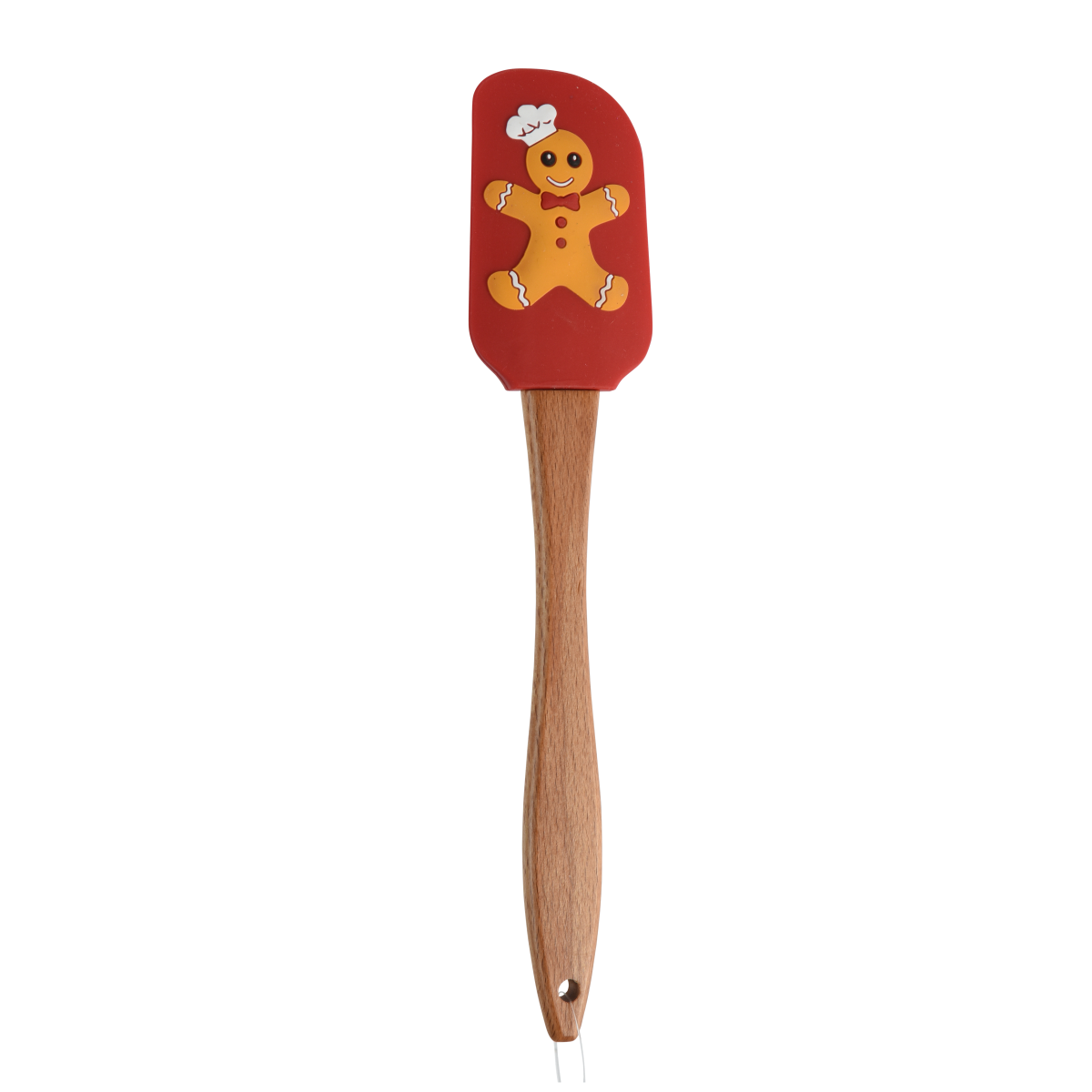 A NORAND szilikon spatula bükkfa nyéllel és mézeskalács mintával egy praktikus és stílusos konyhai eszköz. A spatula feje szilikonból készült, amely rugalmas és tartós, így ideális különféle konyhai feladatokhoz, mint például keveréshez, simításhoz és kaparáshoz. A bükkfa nyél kényelmes fogást biztosít, és természetes megjelenést kölcsönöz az eszköznek. A mézeskalács minta pedig egyedi és vidám megjelenést ad a spatulának, tökéletes választás ünnepi sütéshez vagy ajándéknak is.