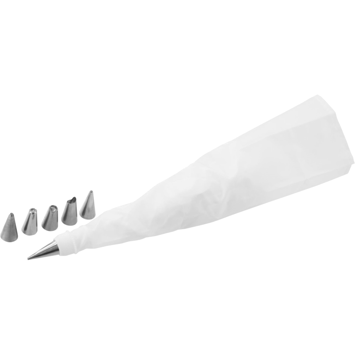 Zenker habzsák hat darab rozsdamentes acél habnyomó fejjel. Sütemények egyedi díszítésére alkalmas. Mosása kézzel ajánlott.
