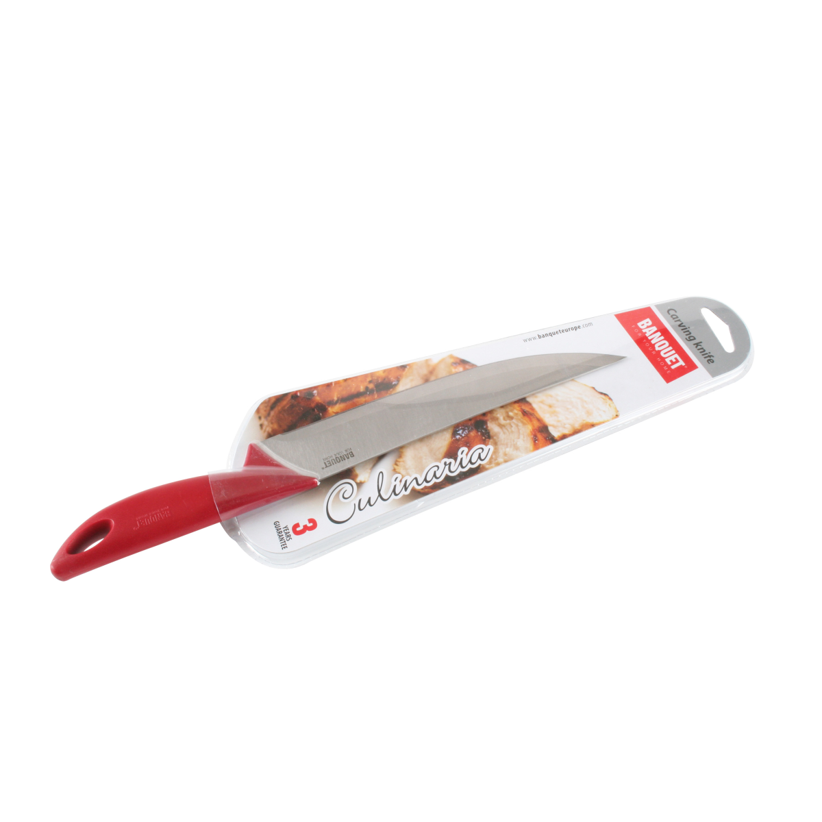 A Red CULINARIA 20 cm bontókés pengéje acél (hossza 20 cm, szélessége 2 cm), markolata műanyag (hossza 11,4 cm), a kés teljes hossza 31,4 cm. Az acélkések valamennyi konyha nélkülözhetetlen eszközei. A megfelelő kés kiválasztása megkönnyíti az élelmiszerek szeletelését illetve darabolását. A BANQUET késkollekció sokféle formájú, méretű és felhasználási célú kések széles választékát kínálja