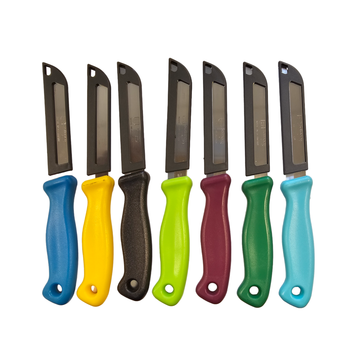 Domotti Color hámozó alkalmas a legtöbb zöldség és gyümölcs hámozására. Jó minőségű alumíniumból és műanyagból, 9 cm-es pengehosszúsággal. Mosogatógépben tisztítható.