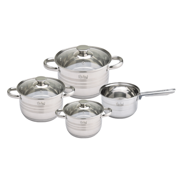 Használható gáz-, elektromos-, kerámialapos-, és indukciós tűzhelyen, 3 db különböző méretű lábas, 1 db nyeles lábas, 3 db üvegfedő. 1. lábas: átmérője: 16cm, magassága: 10cm; űrtartalma: 2 L. 2. lábas: átmérője: 20 cm, magassága: 10cm; űrtartalma: 3L. 3. lábas: átmérője: 24 cm, magassága: 12cm; űrtartalma: 5,5L. Nyeles lábas: átmérője: 16 cm, magassága: 10cm, nyél hossza: 15 cm; űrtartalma: 2L.