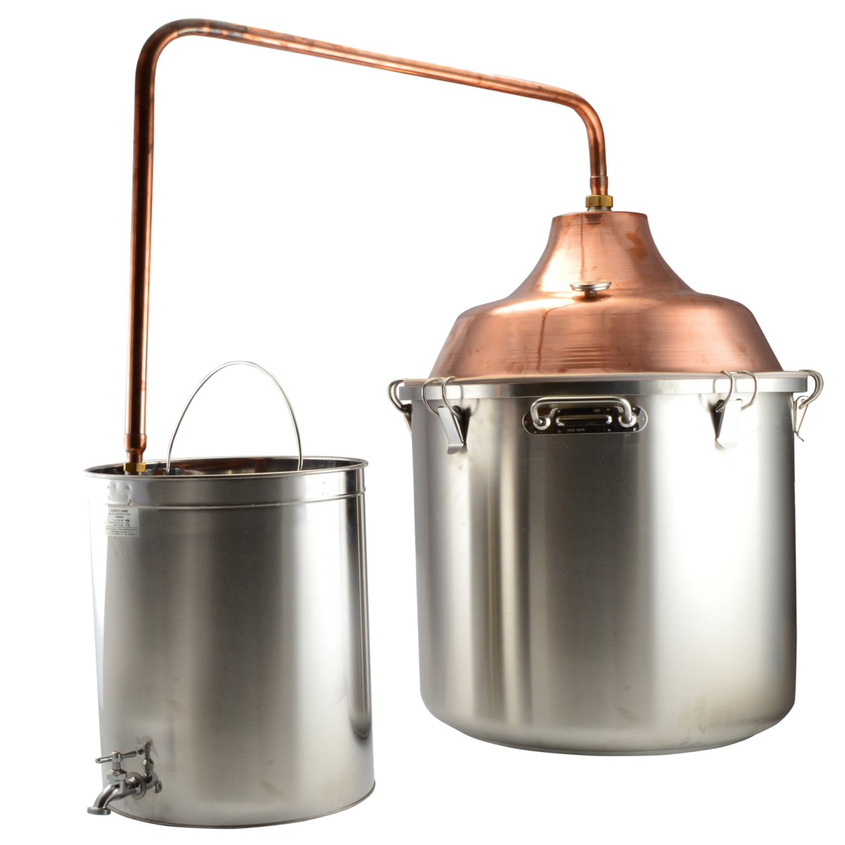Tartozékok:1 db lepárlóüst 92literes, 4db leszorító bilinccsel,1 db réz kupola, szeleppel, és beépített hőmérővel, 1 db leszorító gyűrű, 2 db szilikon tömítő gyűrű, 1 db páraelvezető cső, 1 db hűtőedény 30 literes