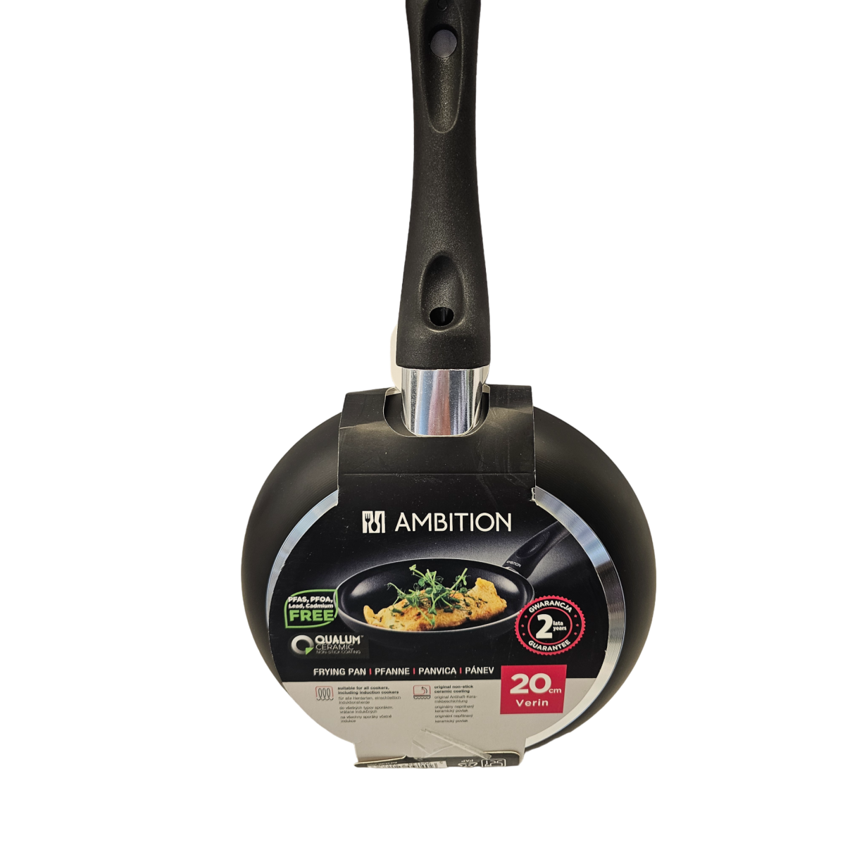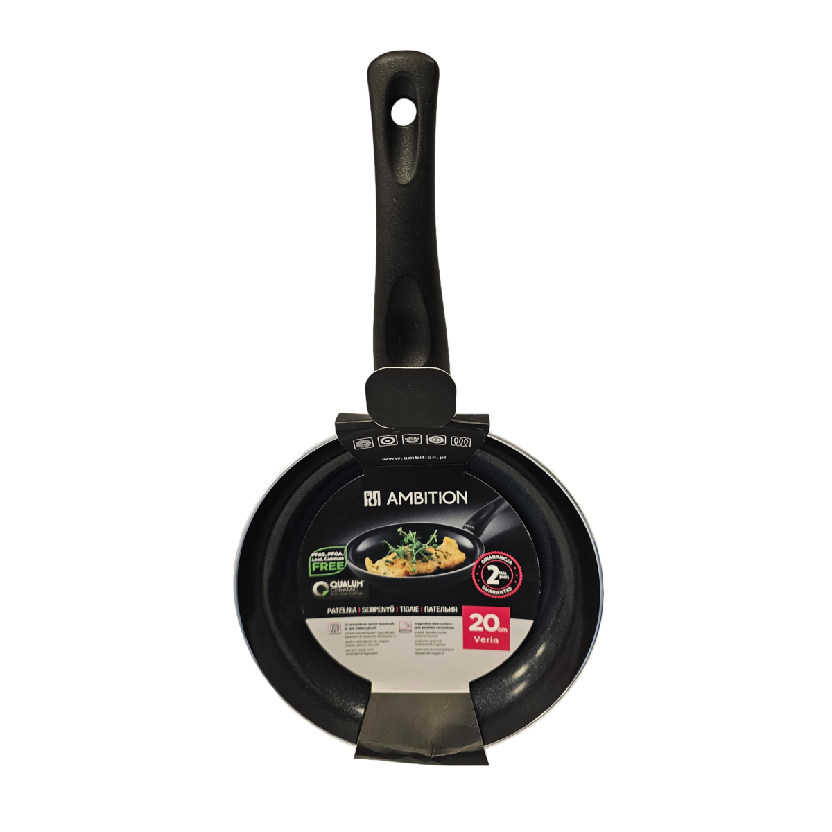 A Verin serpenyő egy időtlen klasszikus. Kívül matt fekete, belül kerámia bevonattal. A serpenyő bakelit fogantyús alumíniumból készült, ellenáll a magas hőmérsékletnek. A serpenyőt az eredeti Qualum Ceramic tapadásmentes kerámia bevonat borítja. A Xerogel technológián alapuló, természetes ásványi anyagokból készült, PFAS, PTFE, valamint PFOA, kadmium és ólom mentes, ezért környezetbarátabb és nem ártalmas az egészségre. A serpenyő minden típusú tűzhelyen használható.