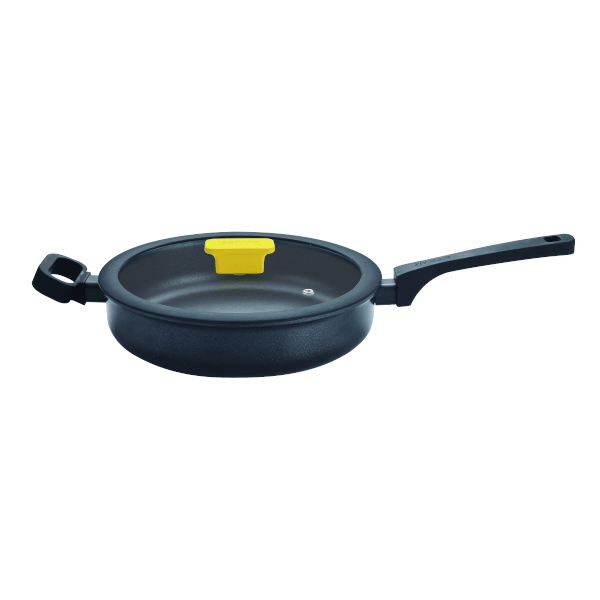 Alumínium edény Whitford xylan tapadásmentes bevonattal az alacsony zsírtartalmú főzés és egyszerű tisztíthatóság érdekében; bármilyen főzőlapon alkalmazható - beleértve az indukciósat is; Sütőben 180 fokig használható, Mosogatógépben mosható. Mérete: 28 cm.