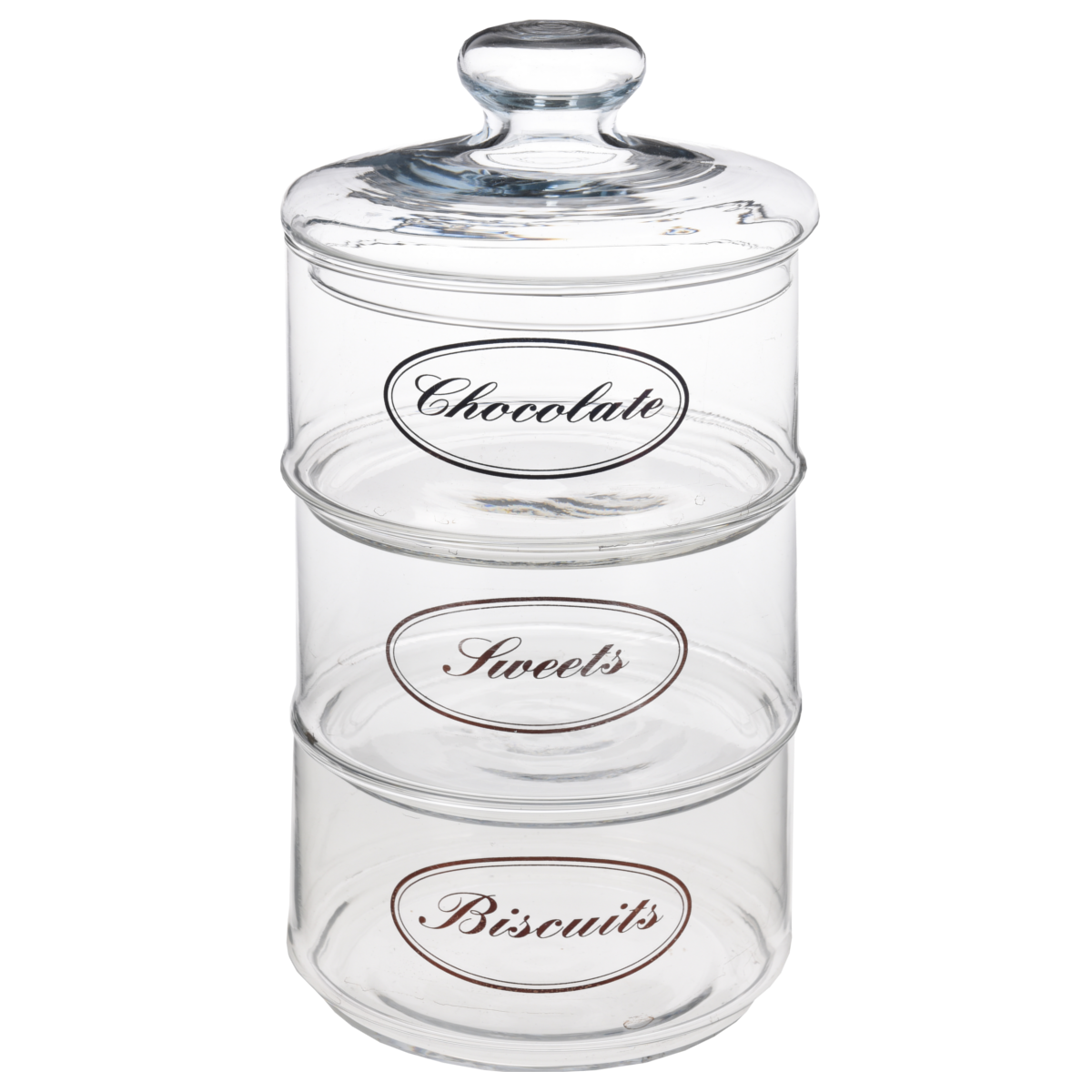 3 emeletes üveg sütemény tartó, átmérője 16 cm, magassága 40 cm.