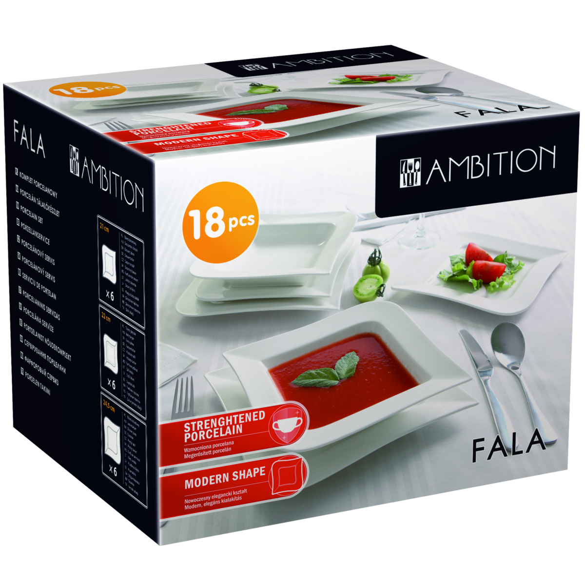 ÉTKÉSZLET 18-RÉSZES FALA (6DB LAPOS,LEVESES-ÉS DESSZERTES)