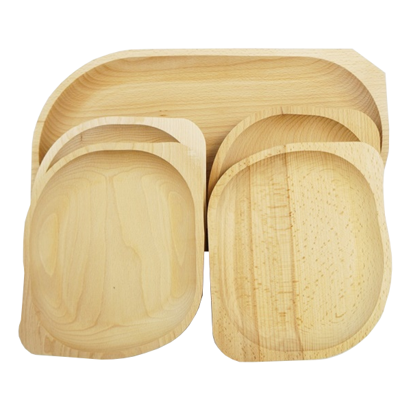 4+1 db-os bükkfa tálaló szett, melynek részei: 4 db tányér (3x23,5x20 cm), 1 db nagy méretű tál (3x43x23 cm). Tisztítása: első használat előtt és minden használat után meleg mosószeres vízzel mossa el, öblítse el, törölje szárazra. Ne használjon karcosodást okozó szereket, illetve eszközöket! Mosogatógépen nem mosható! Semmiképpen se hagyjuk a fa termékünket a vízben állni! Óvni kell az erős napfénytől, a hótól és a sok nedvességtől.