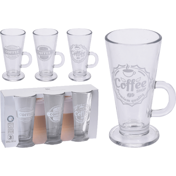 Latte Macchiato pohár szett 3 db/ szett, 270 ml, anyaga: üveg
