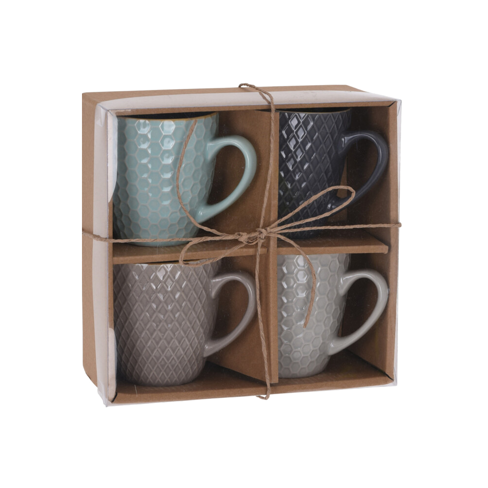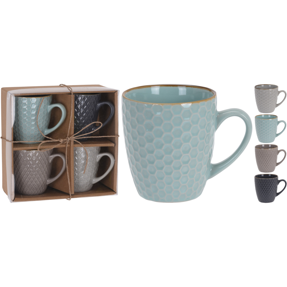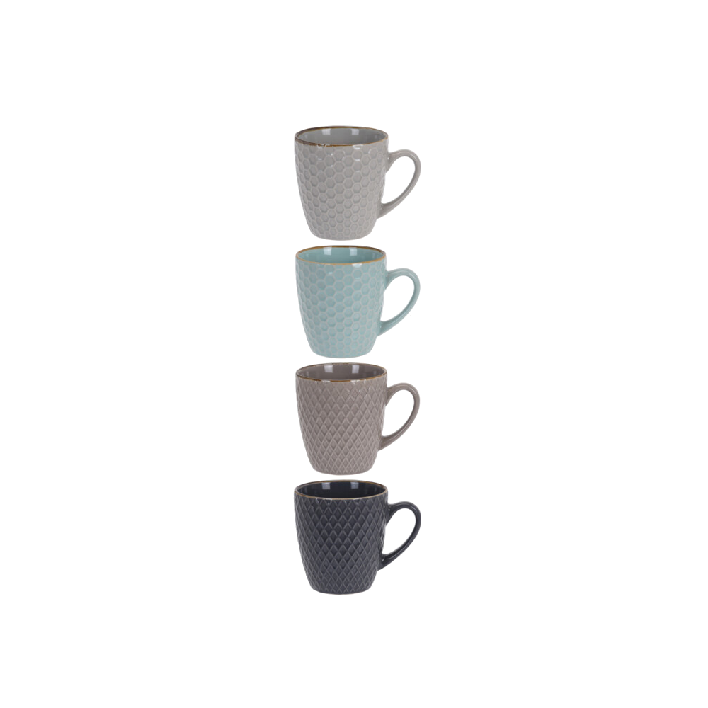 A bögre kerámiából készült, forró és hideg italokhoz egyaránt alkalmas. 4 darabos kiszerelésben kapható, különböző mintákkal és színekben (barna, bézs, kék, szürke). Akár ajándéknak is kitűnő ötlet lehet.