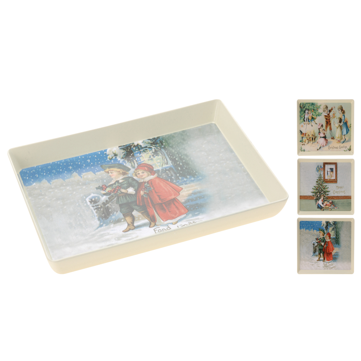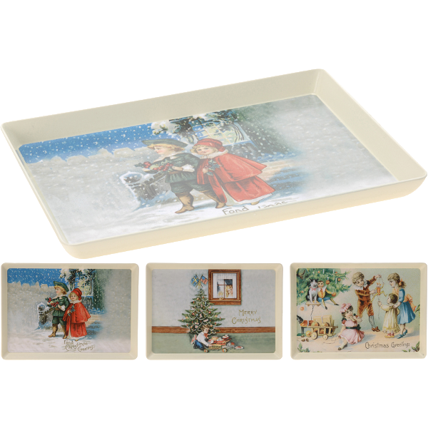 TÁLCA 27X19X2CM, MŰANYAG 4-FÉLE KARÁCSONYI MINTA