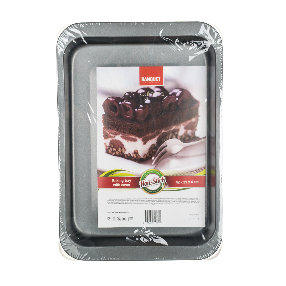 CULINARIA tepsi műanyag tetővel 42 x 29 cm méretben. A tepsi mélysége 4 cm. Anyaga tapadásmentes felülettel bevont szénacél, anyagvastagsága 0,4 cm. A XYNFLON tapadásmentes felület PTFE (politetrafluoretilén) bázisú, rendkívül ellenálló, első osztályú antiadhéziós tulajdonságokkal rendelkezik és könnyen karbantartható.