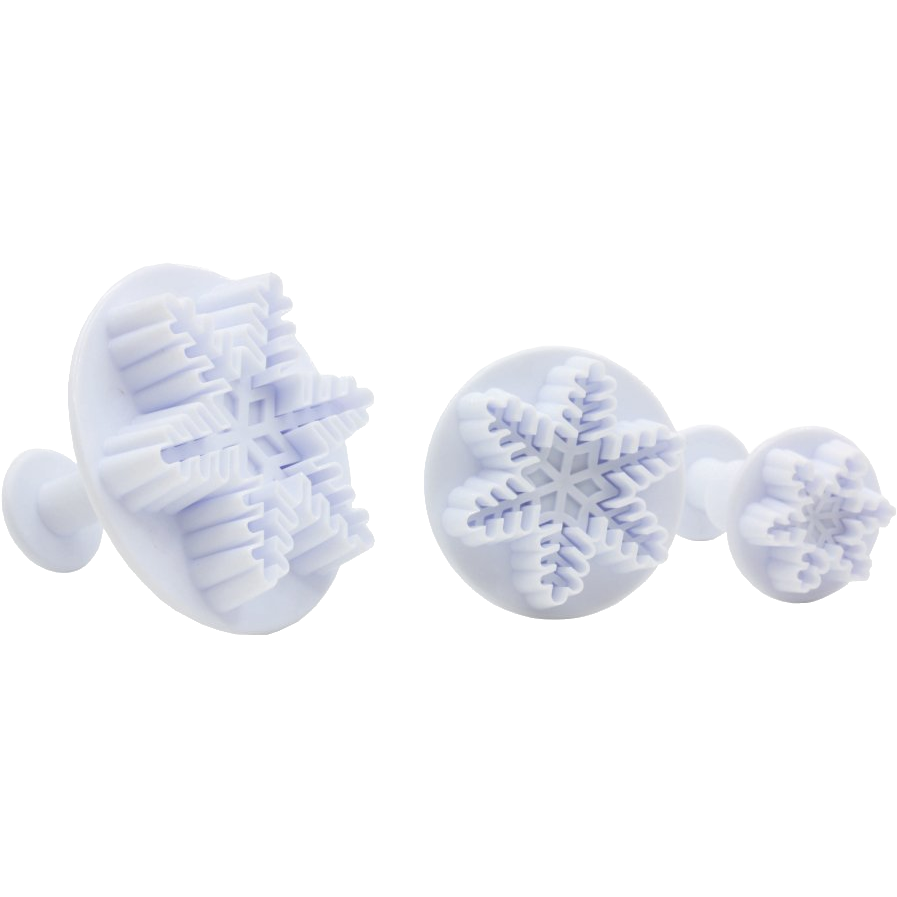A szett 3 db hópihe formájú süteményformázót tartalmaz, melyek alkalmasak fondant formázására is. Háromféle méretben: 55mm, 40mm, 25mm. Kézi tisztítás ajánlott.