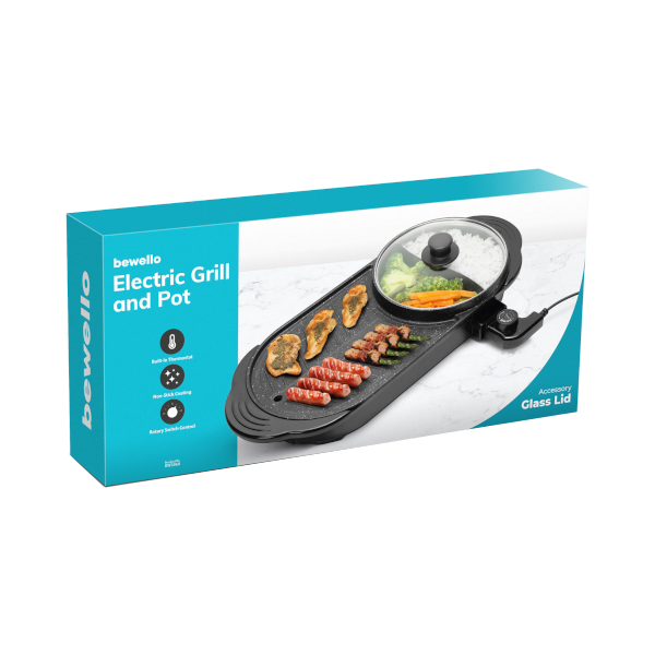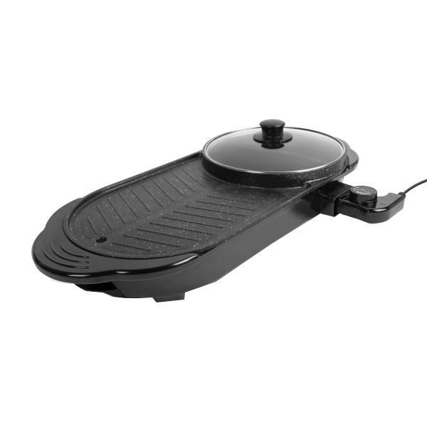 Innovatív, kettő az egyben termék, amely kiváló megoldást nyújt többféle étel egyidejű elkészítésére. Ezáltal időt és energiát is spórolhat! A tapadásmentes bevonatnak köszönhetően az étel nem tapad le, könnyen forgatható marad, ideális lehet húsok készítésére. A fedővel rendelkező fazék rész, zöldségek párolására, levesek, köretek készítésére is alkalmas. Beépített termosztáttal, forgókapcsolós vezérléssel, kihúzható olajgyűjtő tálcával rendelkezik. Az üveg fedő tartozéka a terméknek. Energiaellátás: 220-240 V - 50/60 Hz - 10 A. Teljesítmény: max. 1500 W, Hőmérséklet szabályozás: 10 - 350 °C, Mosogatógépben nem mosható. Túlmelegedés elleni védelemmel és hőszígetelt burkolattal ellátva. IP20-as védelemmel. Fazék űrtartalma: 1 L. A termék mérete: 550 x 224 x 130 mm, Olajgyűjtő mérete: 86 x 83 x 13 mm. Anyaga: Műanyag / öntött alumínium, fekete színben. Kábel hossza, típusa: 57 cm, 3G0,75mm².
