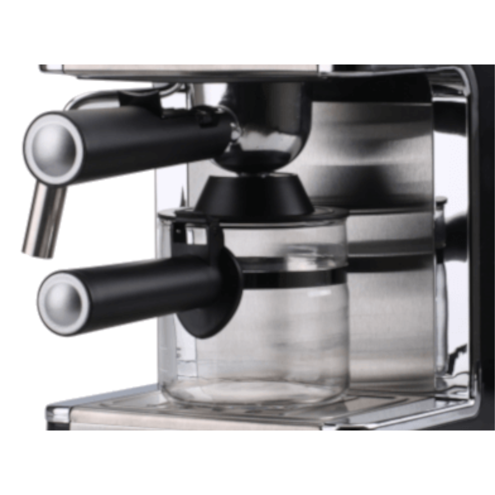 Eszpresszó kávé és cappuccino készítés 4 csésze kapacitás. Gőzölő funkció. Kivehető csepegtető tálca. Túlmelegedés elleni védelem, 800W teljesítmény. Méret:35x22x19 cm.