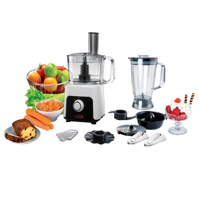 Hauser FP-75 univerzális robotgép, 500 W teljesítményű motorral, egy 2 l-es edénnyel és egy 1,8 l-es turmixkehellyel. Két sebességfokozattal + pulzáló üzemmóddal, valamint dupla biztonsági rendszerrel.