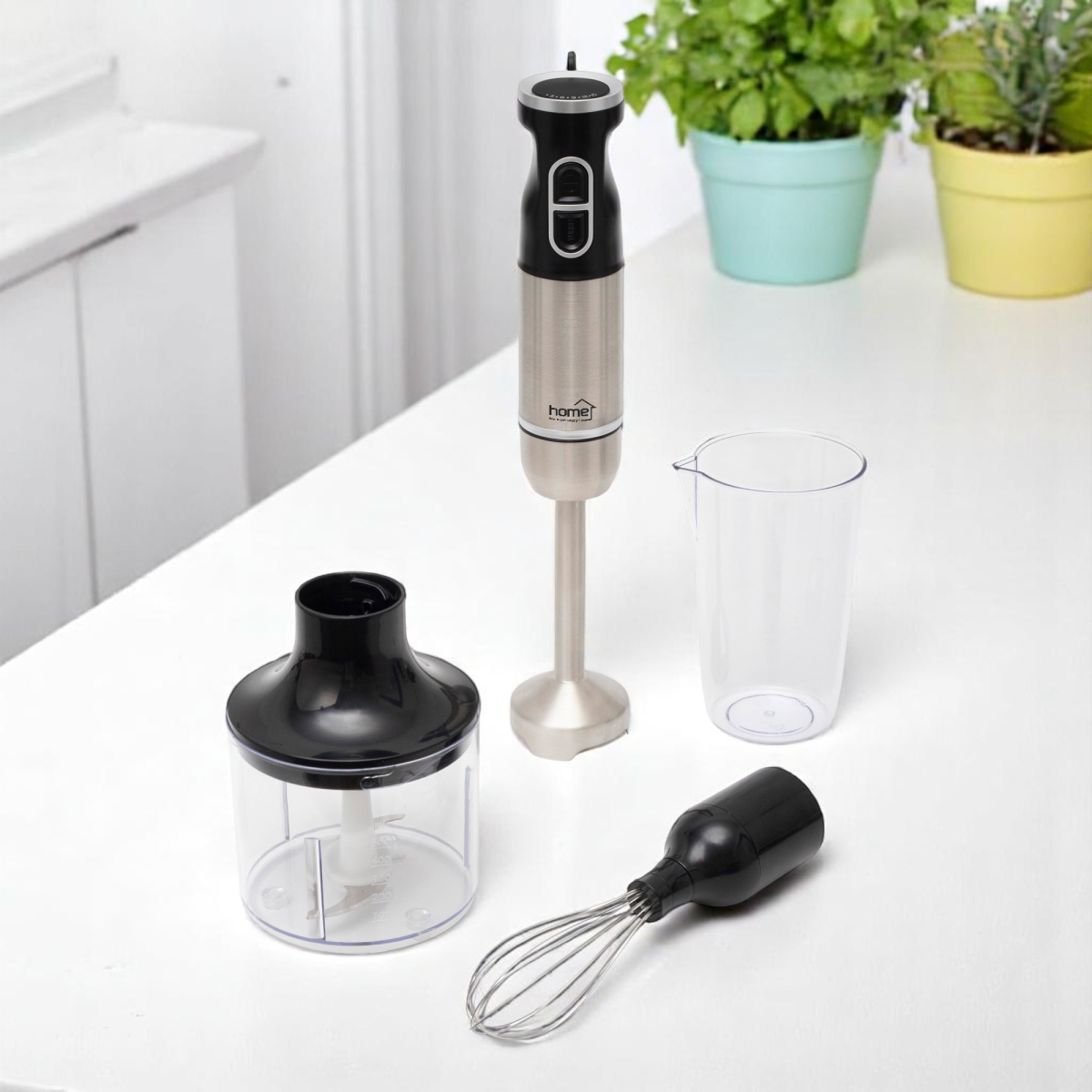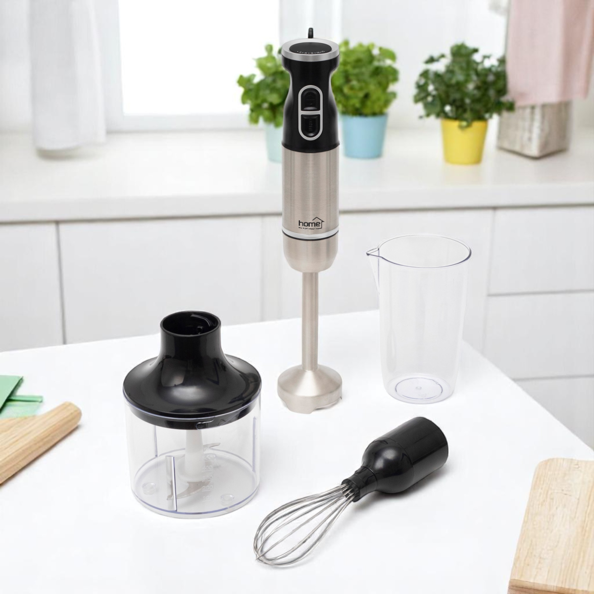 A Home botmixer készlet egy erőteljes és megbízható eszköz, amelyet kifejezetten a mindennapi konyhai feladatok gyors és hatékony elvégzésére terveztek. A 1000 W-os teljesítmény 15 fokozatban szabályozható, plusz egy extra TURBO funkció is rendelkezésre áll a még intenzívebb keveréshez.
