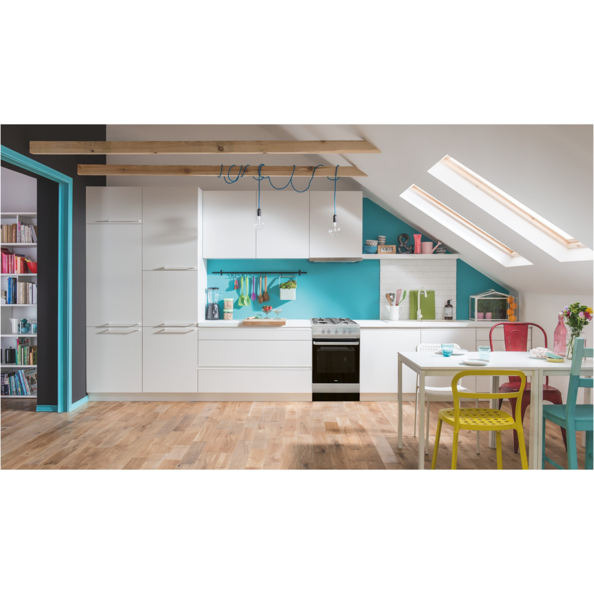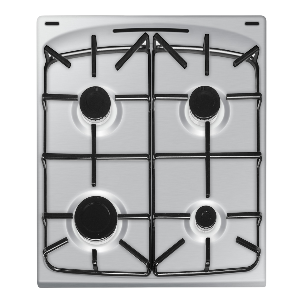 A főzőfelület 4 gázégővel rendelkezik, különböző méretű edények használatához. A sütő 58 literes, statikus gázüzemű kivitelben, könnyen tisztítható belső zománcozással.