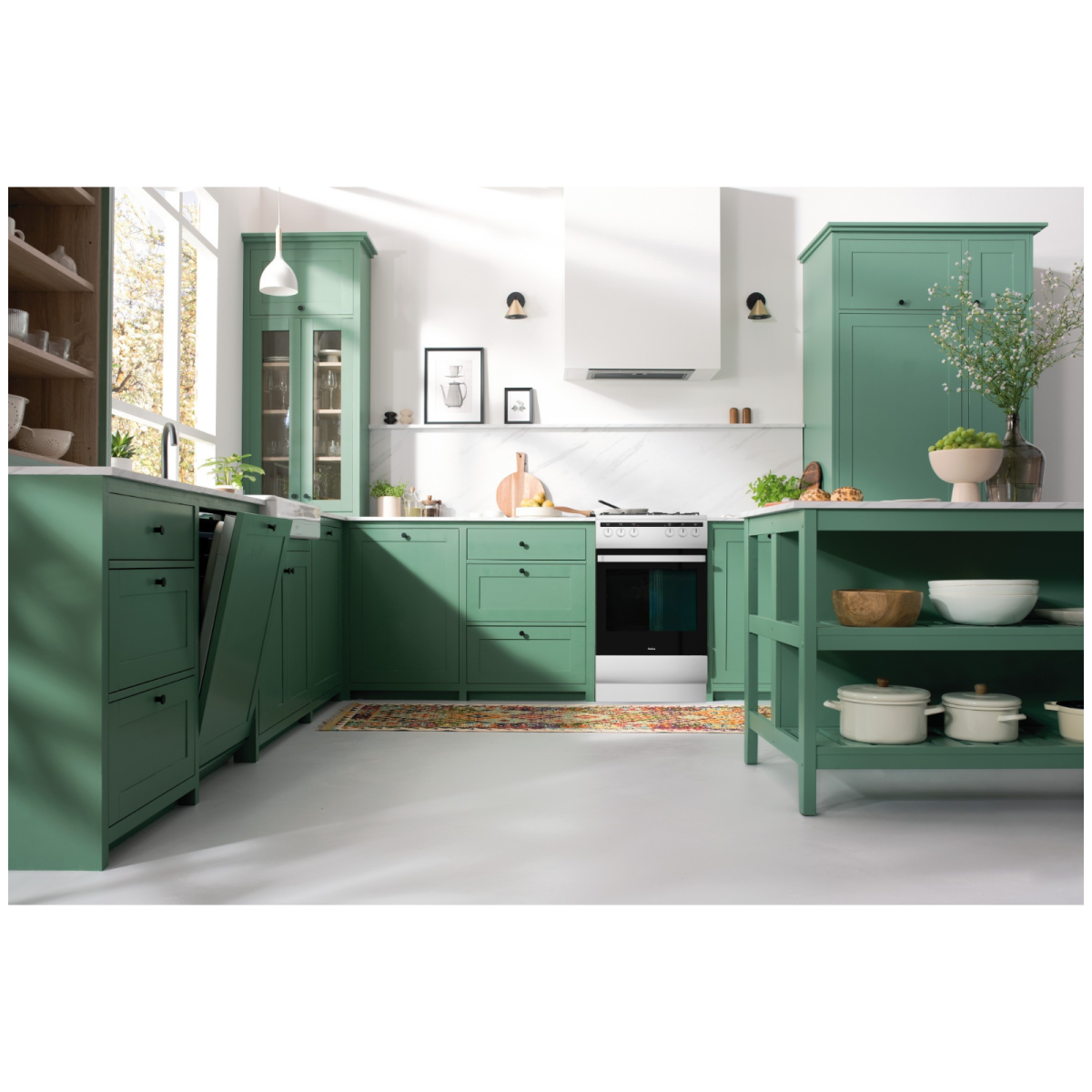 A készülék 4 zónás kerámia főzőlappal, 9 sütési funkcióval és gőztisztítási lehetőséggel rendelkezik. A tripla üvegezésű, hagyományos nyitású sütőajtó leszerelhető, a halogén világítás pedig segíti az ételek ellenőrzését sütés közben.