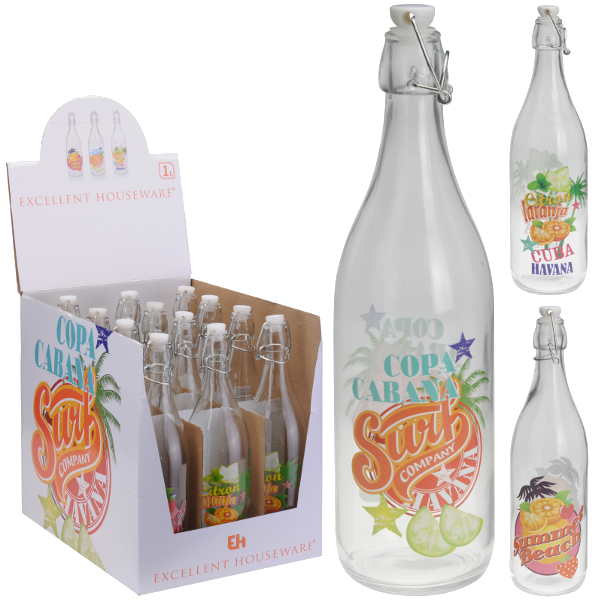 Csatos üveg, átlátszó szilikon gyűrűvel. - 1000 ml - 3 féle modell