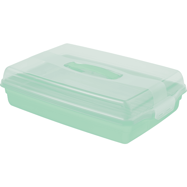 Praktikus négyszögletes ételtároló sütemény és szendvicsek tárolására és szállítására. A kézreálló fogantyú segít a szálításában, kiválóan alkalmas a családi piknikre. Ideális konyhaasztalon, hűtőszekrényben, szekrényben való alkalmazásra. Az ételtárolónak köszönhetően a sütemények és a harapnivalók hosszabb ideig megőrzik frissességüket. A termék élelmiszerrel való kapcsolatra feljogosító tanúsítvánnyal rendelkezik.