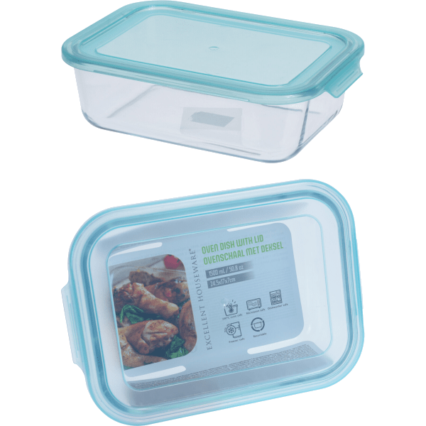 Üveg ételtároló doboz műanyag tetővel, űrtartalom: 1500 ml.
