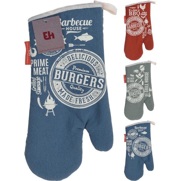 Szilikonos konyhai kesztyű 33x16cm 3-féle barbecue mintás