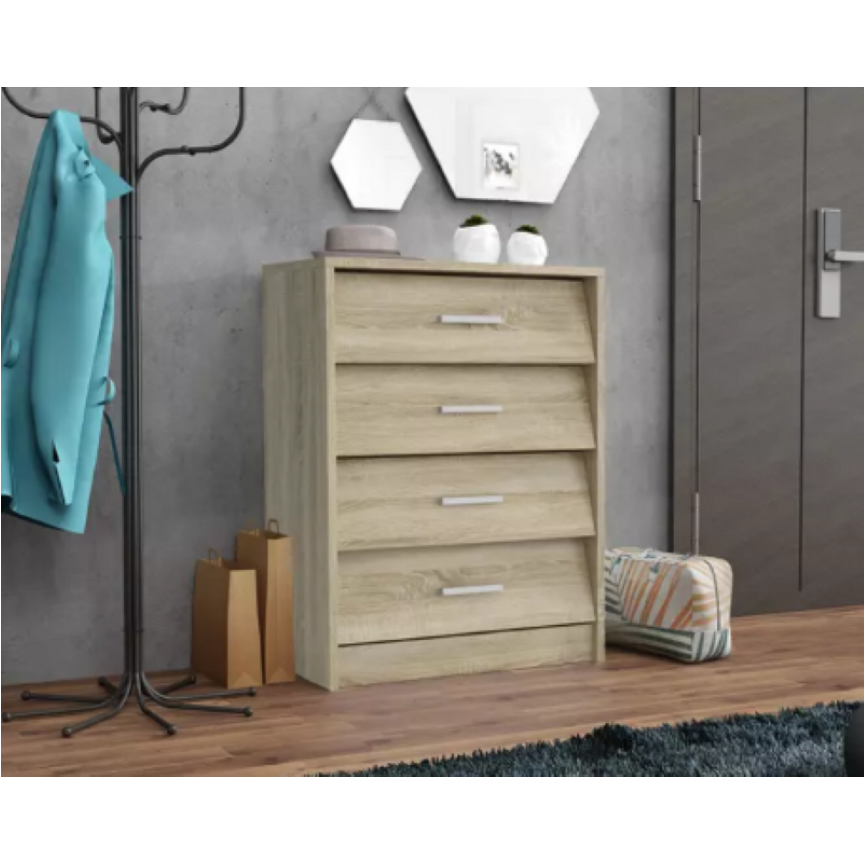 Kiválóan pakolható, 4 darab lenyíló fiókos, dekoratív cipősszekrény a lábbelik praktikus tárolására.