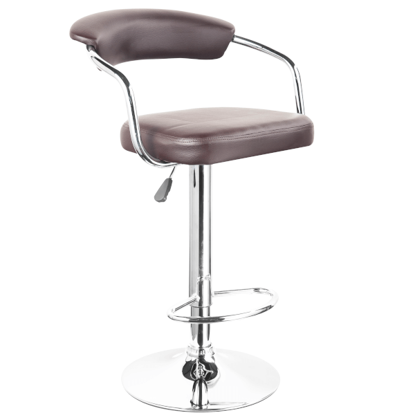 Barna, krómozott talpú bárszék. Mérete 52x85-106x54 cm.