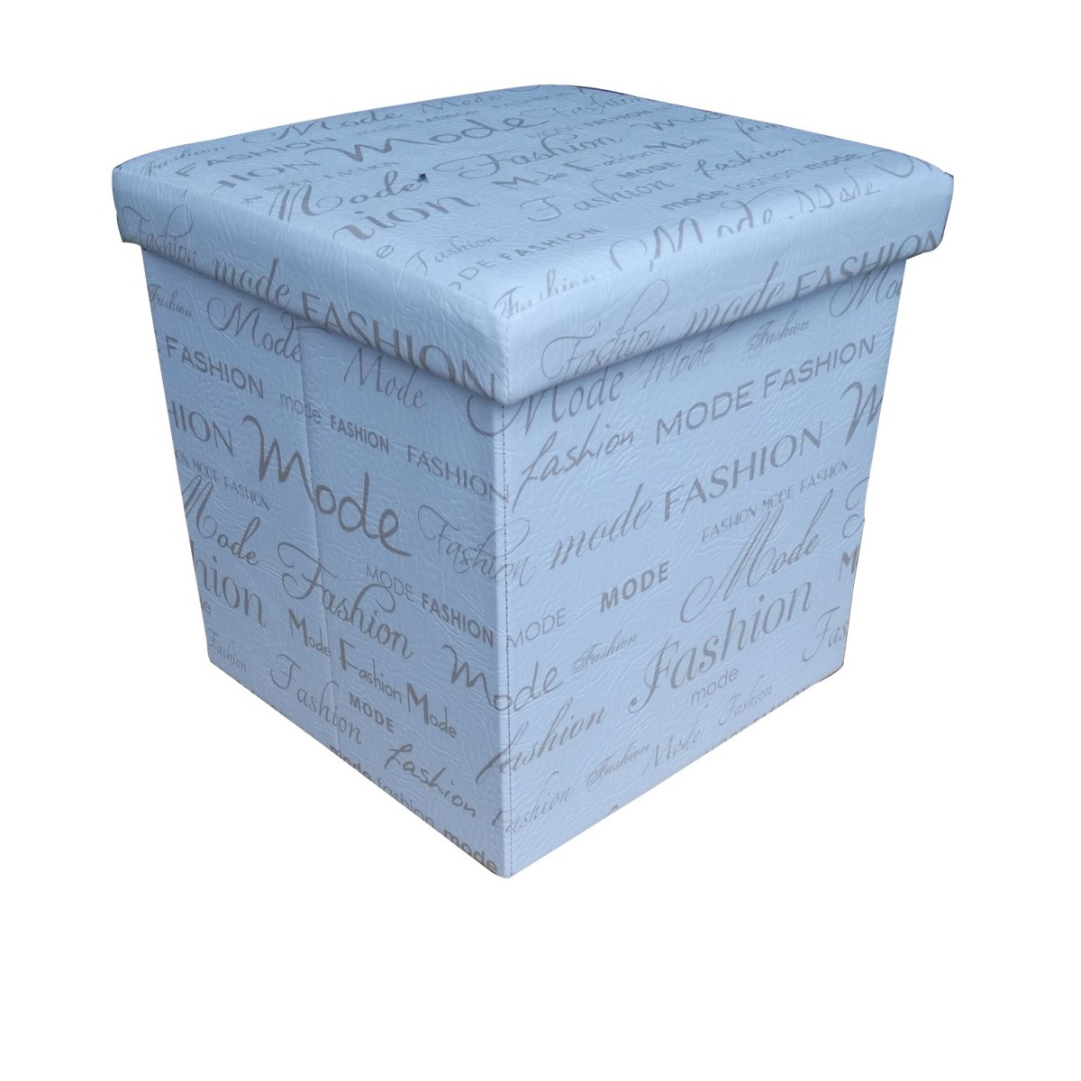 Design tárolós ülöke fehér feliratos, kényelmes ülőalkalmatosság, ami egyben tároló is. Könnyen összecsukható, ezért nagyon praktikus. Vidám mintázataival feldobja a helység hangulatát. Mérete: 38x38x37,5cm.