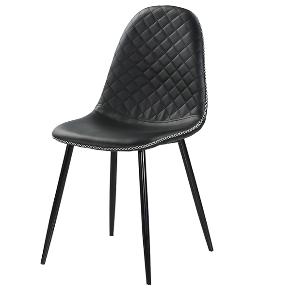 Fekete műbőr szék, fehér kédervarrással, fekete lábakkal